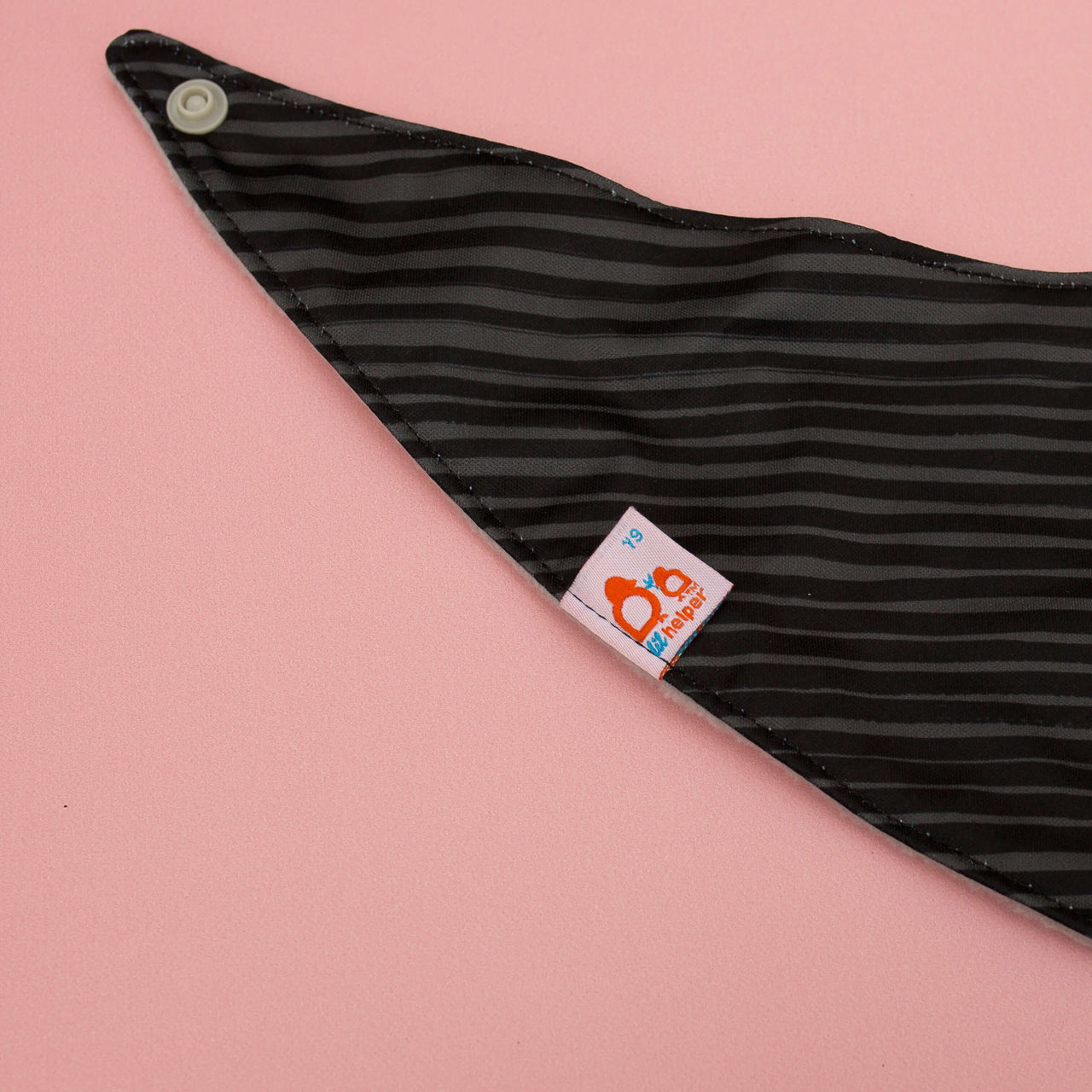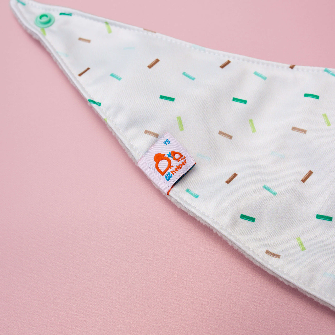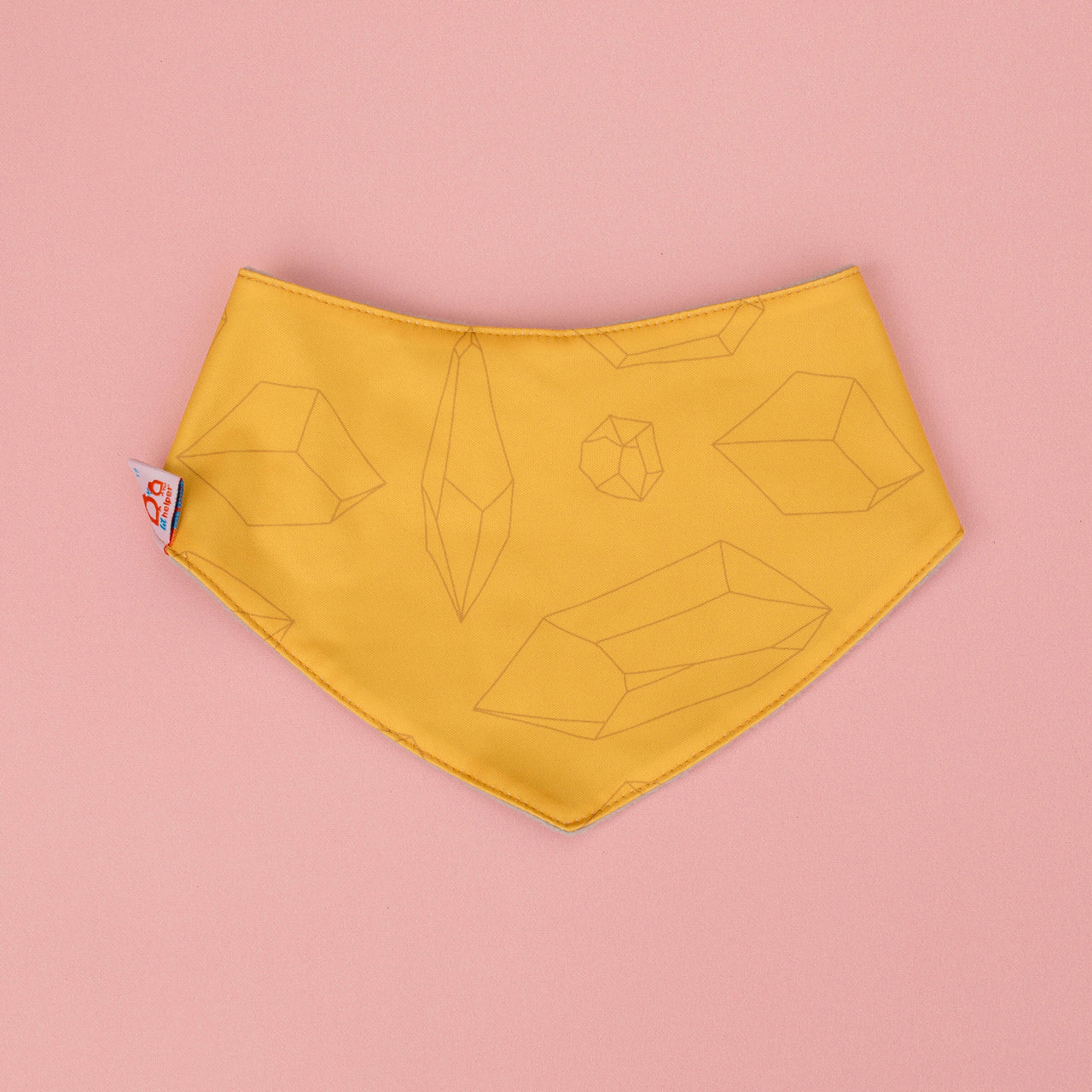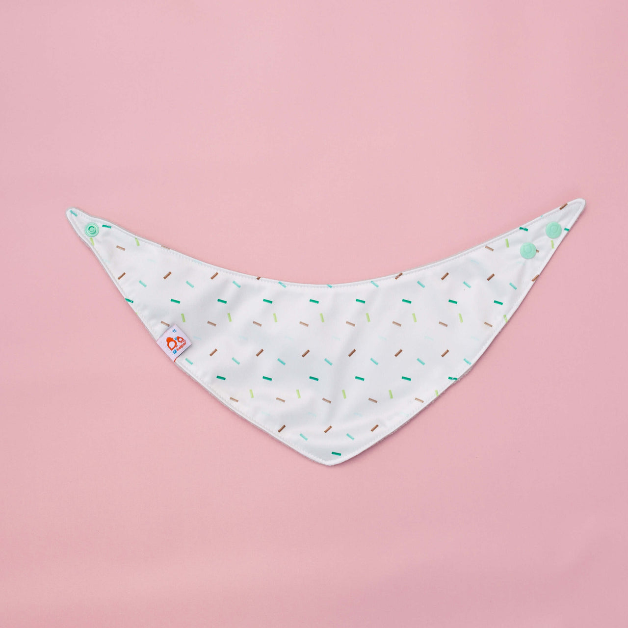 Soft fleece on one side for drool, waterproof PUL on the other for messes. Flip it, wipe it, repeat—two bibs in one stylish package.