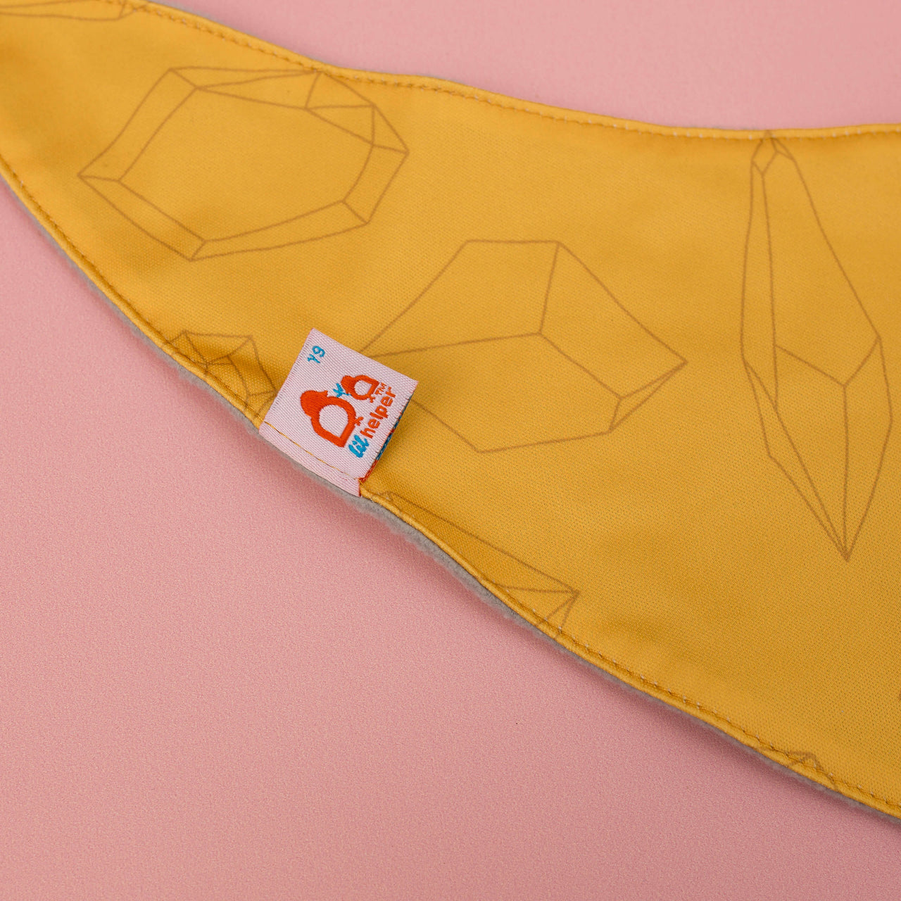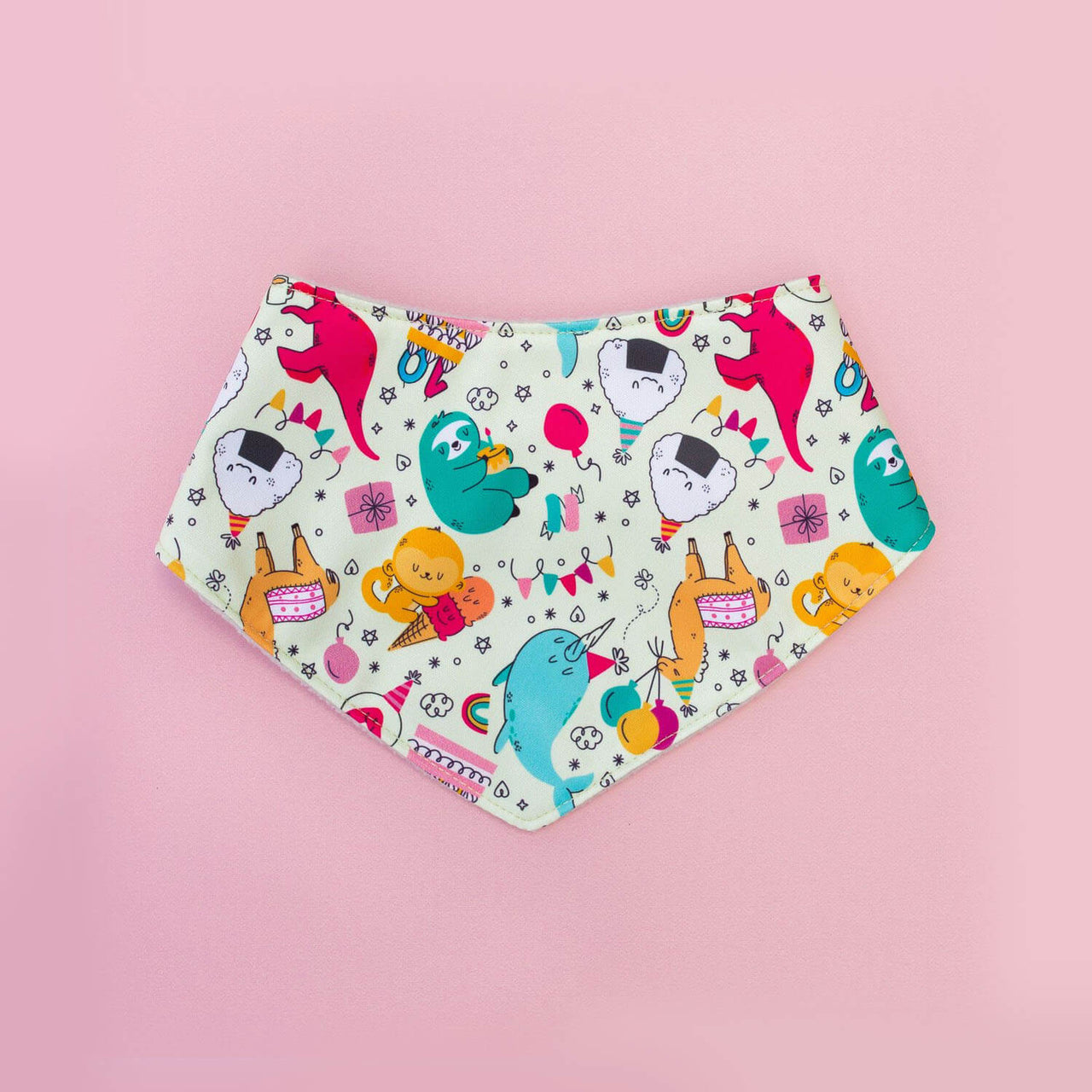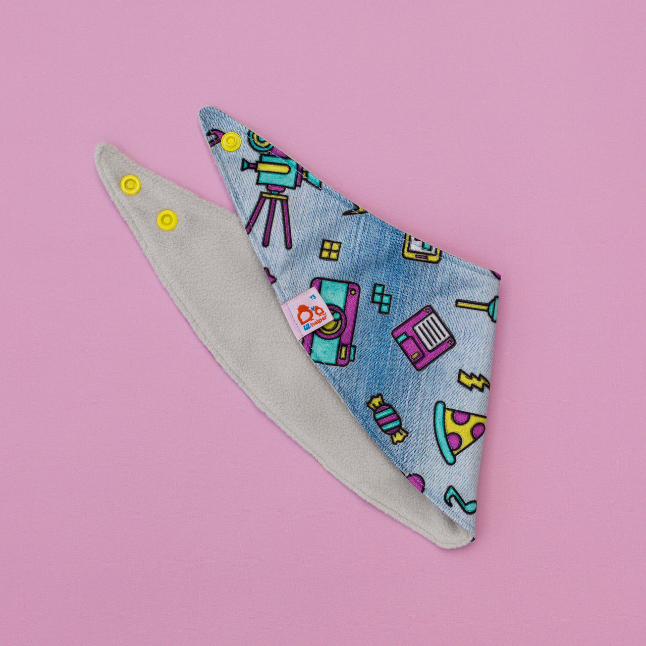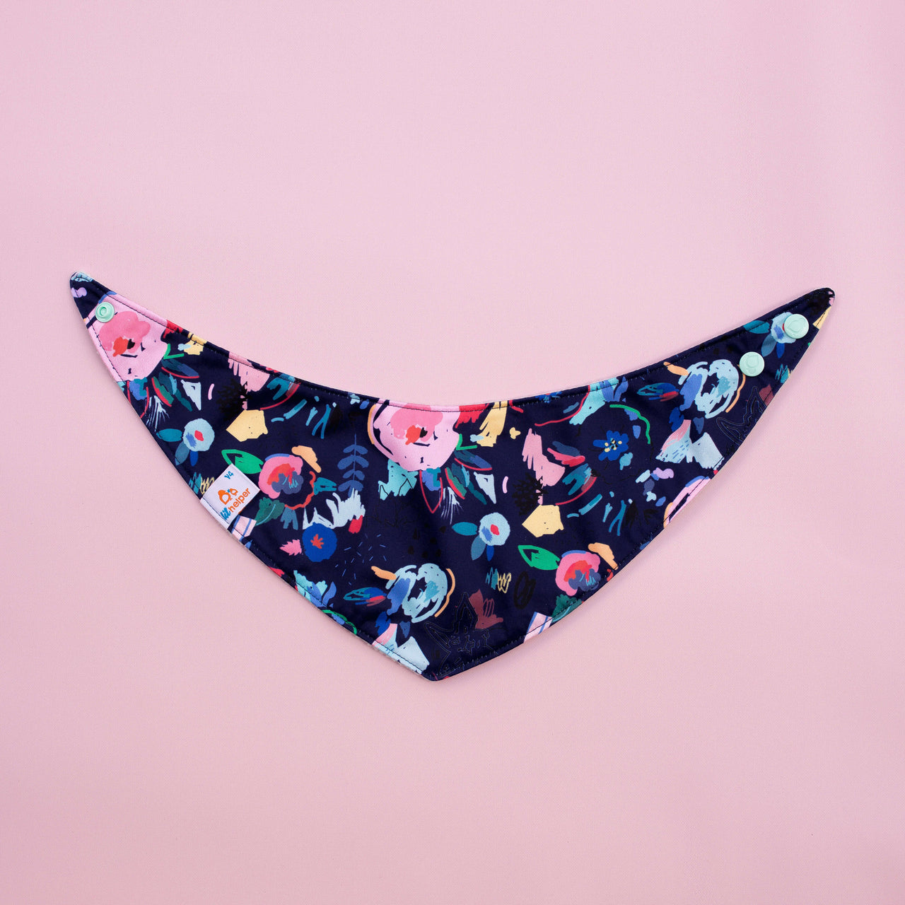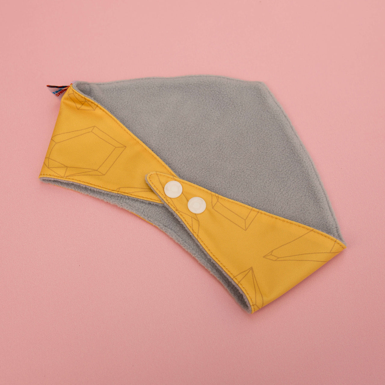 Soft fleece on one side for drool, waterproof PUL on the other for messes. Flip it, wipe it, repeat—two bibs in one stylish package.