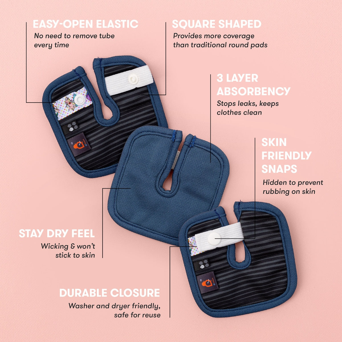 Stay dry and comfortable with Gamma G-Tube Pads. Reusable, leak-proof, and designed for sensitive skin with a soft, absorbent, waterproof design.